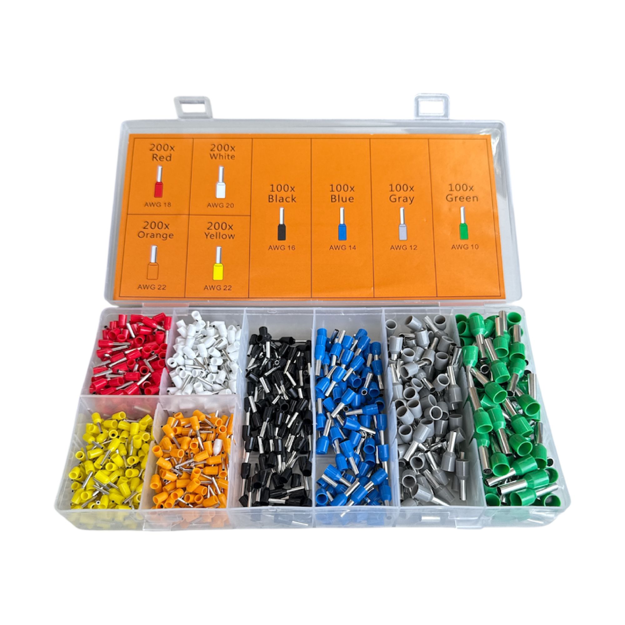 Este kit conta com 1200 terminais para diversos calibres de condutores.