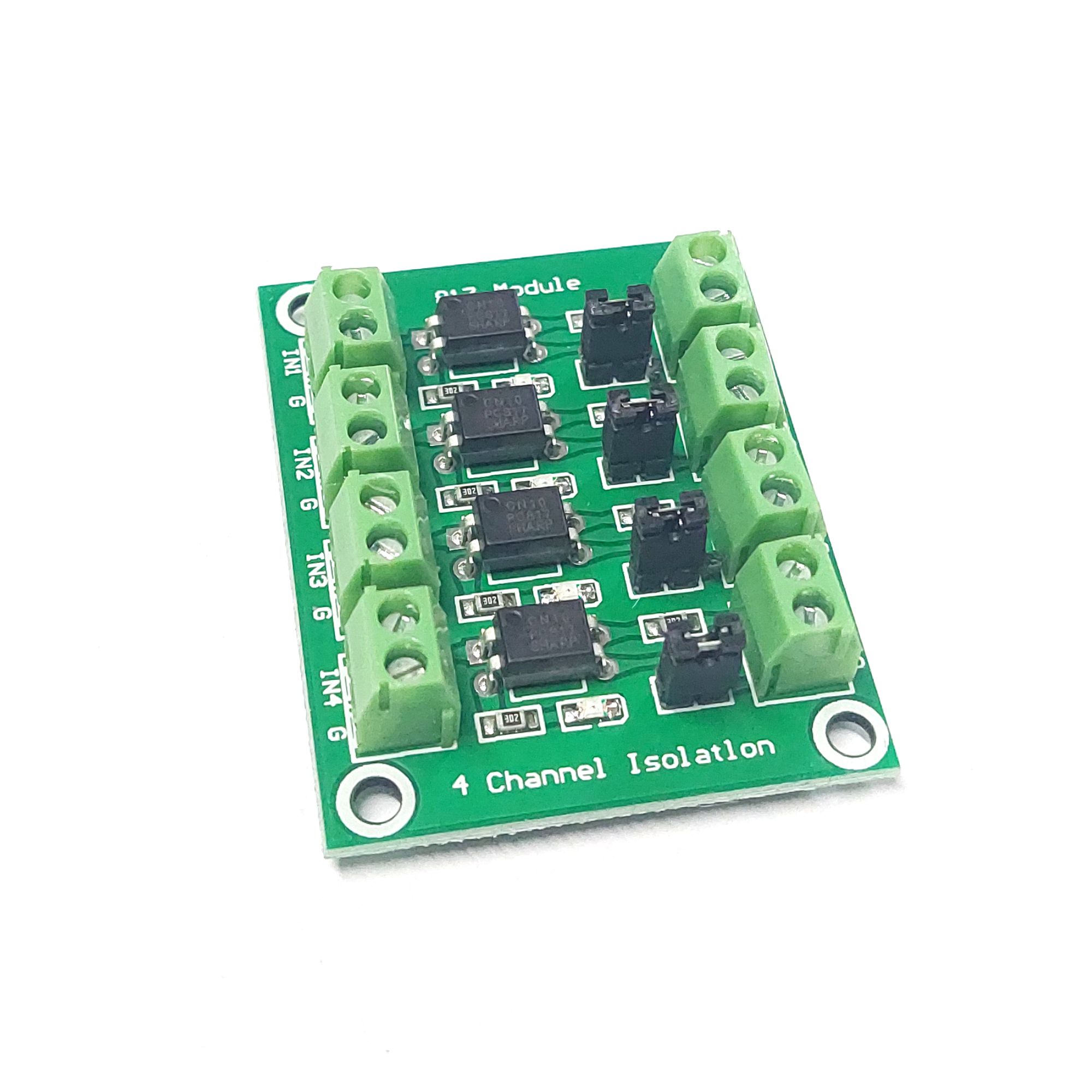 Este módulo é usado quando a operação real requer controle de isolamento e conversão de tensão, pode realizar 3,3V ou 5V para controlar a interface de nível de tensão de 3,6 - 24V. Depois que o terminal de controle é ligado, o terminal controlado também será ligado. O isolamento fotoelétrico tem forte capacidade anti-interferência. Pode dirigir grande atrás de triodes de potência, tubos MOS, etc., onde é necessária uma condução de alta tensão, também pode dirigir diretamente relés de 24V de baixa potência. Se for um sinal de pulso, observe que o limite de 817 está abaixo de 4KHz. Se o sinal de controle for maior do que 4KHz, por favor, não use este módulo, ele não funcionará.